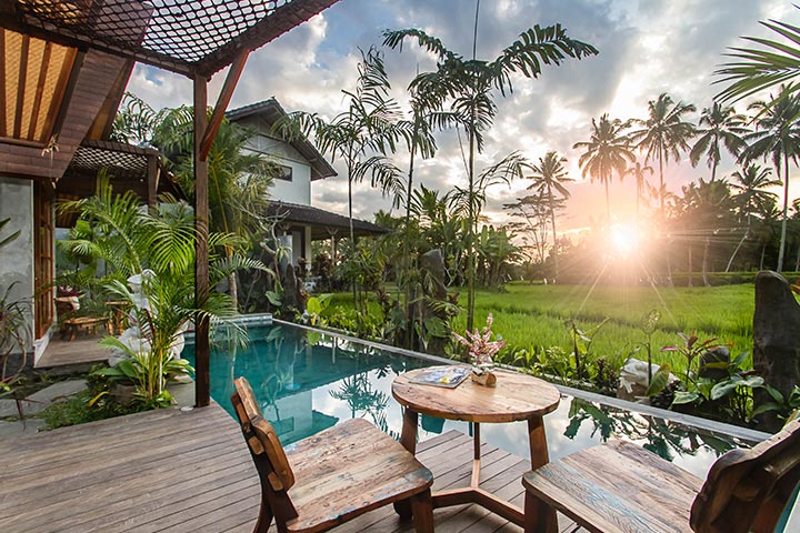 The private pool completes the experience, creating a perfect haven for couples or groups of 4. Immerse yourself in the vibrant local scene, with endless rice fields and charming cafes.