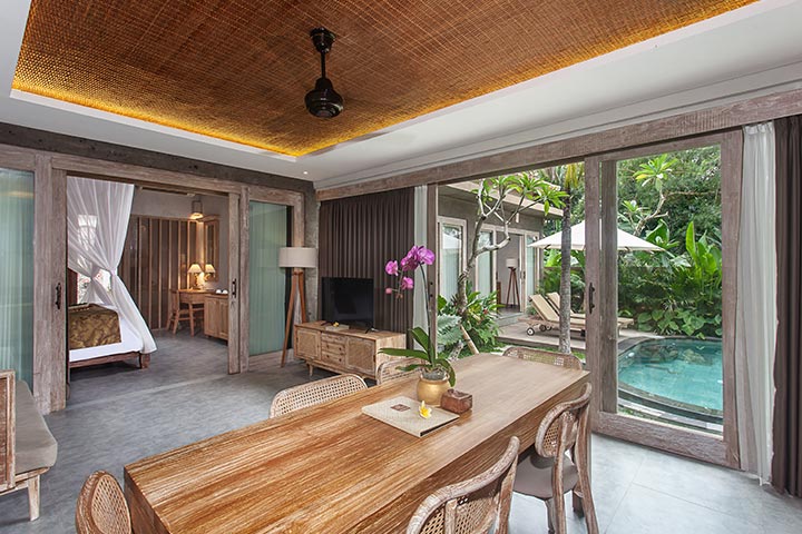 Kemenuh, Bali – Indonesia The luxury family 3BR concept villa with private kitchen, living room, and private pool. The kitchen facilities are including fridge, stove, kitchen sets, water dispenser, and dining area. The rooms, kitchen, and dining area are close to each other by side. It’s a best place to spend your golden moment with family together perfect getaway to create real tranquility away from the hustle and bustle of the city to spend your quality time your group or family. Uma Githa Ubud